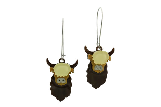 Acrylic Layered Highland Cow Earrings with Stainless Steel Waterdrop Hooks