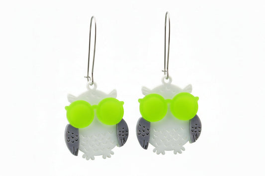 Acrylic Layered Owl Earrings with Stainless Steel Waterdrop Hooks - Cutout Pattern Dangle